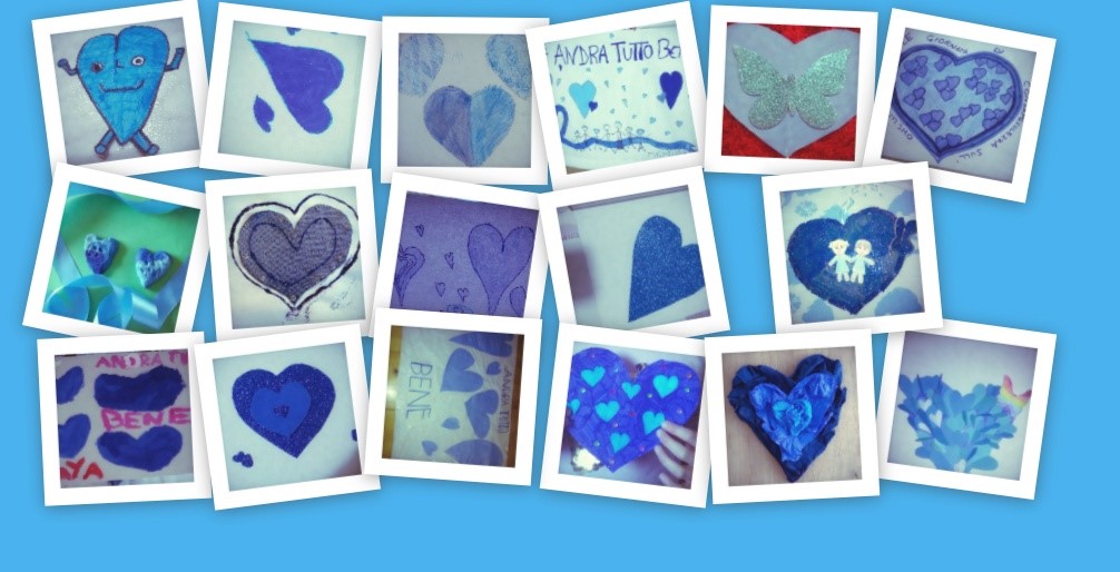 In particolare nella Scuola Primaria Nardi i bambini hanno realizzato il disegno di un cuore blu e ogni classe ha fatto un pannello che abbiamo condiviso sui canali social dell’Associazione. Nella Scuola dell’Infanzia, sia nel plesso Valdi che nel Leoni, sono stati coinvolti i bambini con video e disegni.